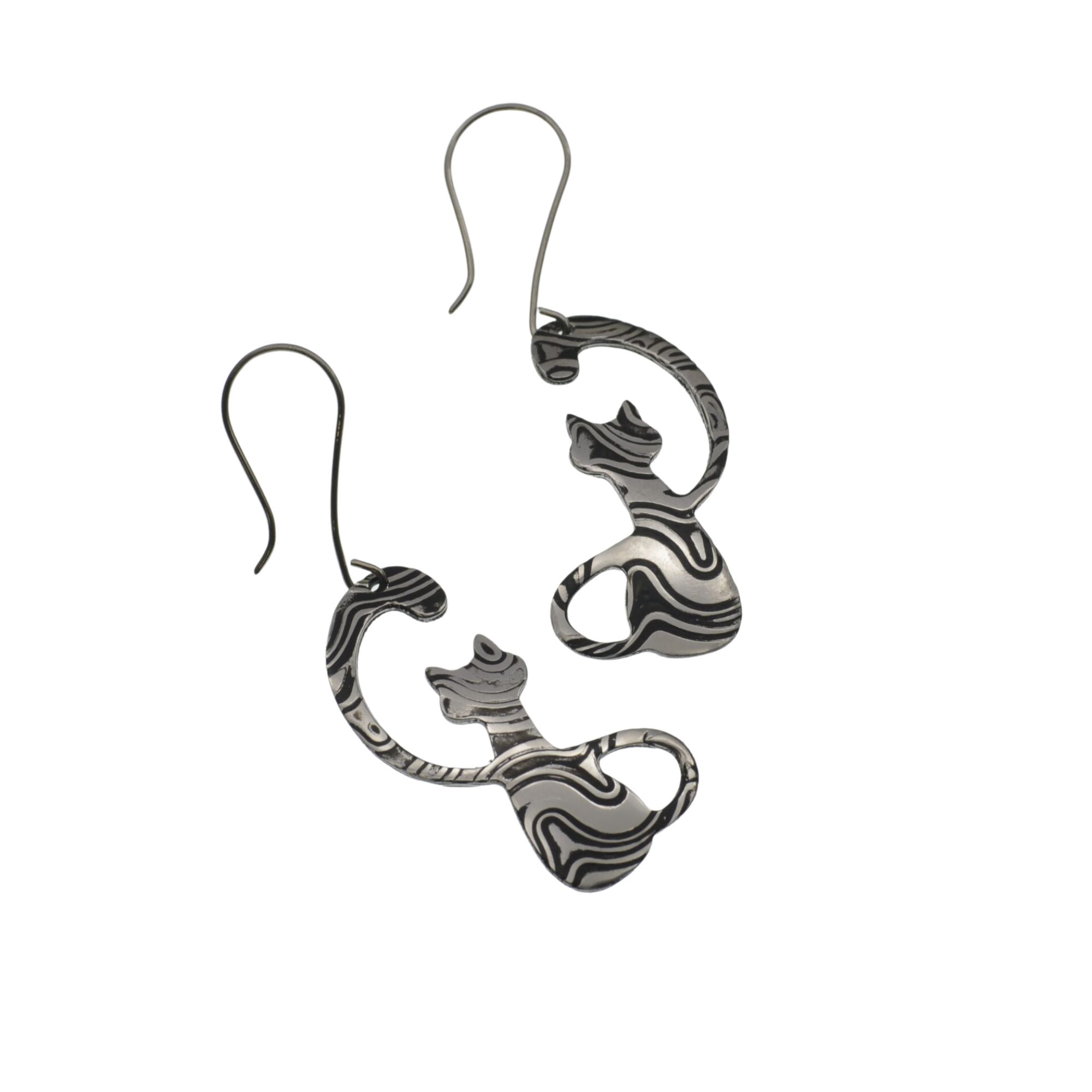 Gli orecchini “Gatti” catturano l’eleganza curiosa e l’indipendenza felina con un tocco leggero e discreto. Le linee sinuose richiamano la flessuosità dei movimenti dei gatti, evocando curiosità, grazia e un senso di libertà personale. Indossarli significa portare con sé uno spirito vivace e attento, capace di osservare il mondo con occhi aperti e un passo leggero. La leggerezza del design li rende piacevoli da indossare tutto il giorno, mentre la brillantezza del damasco in acciaio valorizza ogni gesto. Un accessorio pensato per chi ama muoversi con leggerezza, attenzione ai dettagli e un tocco di raffinata autonomia.
