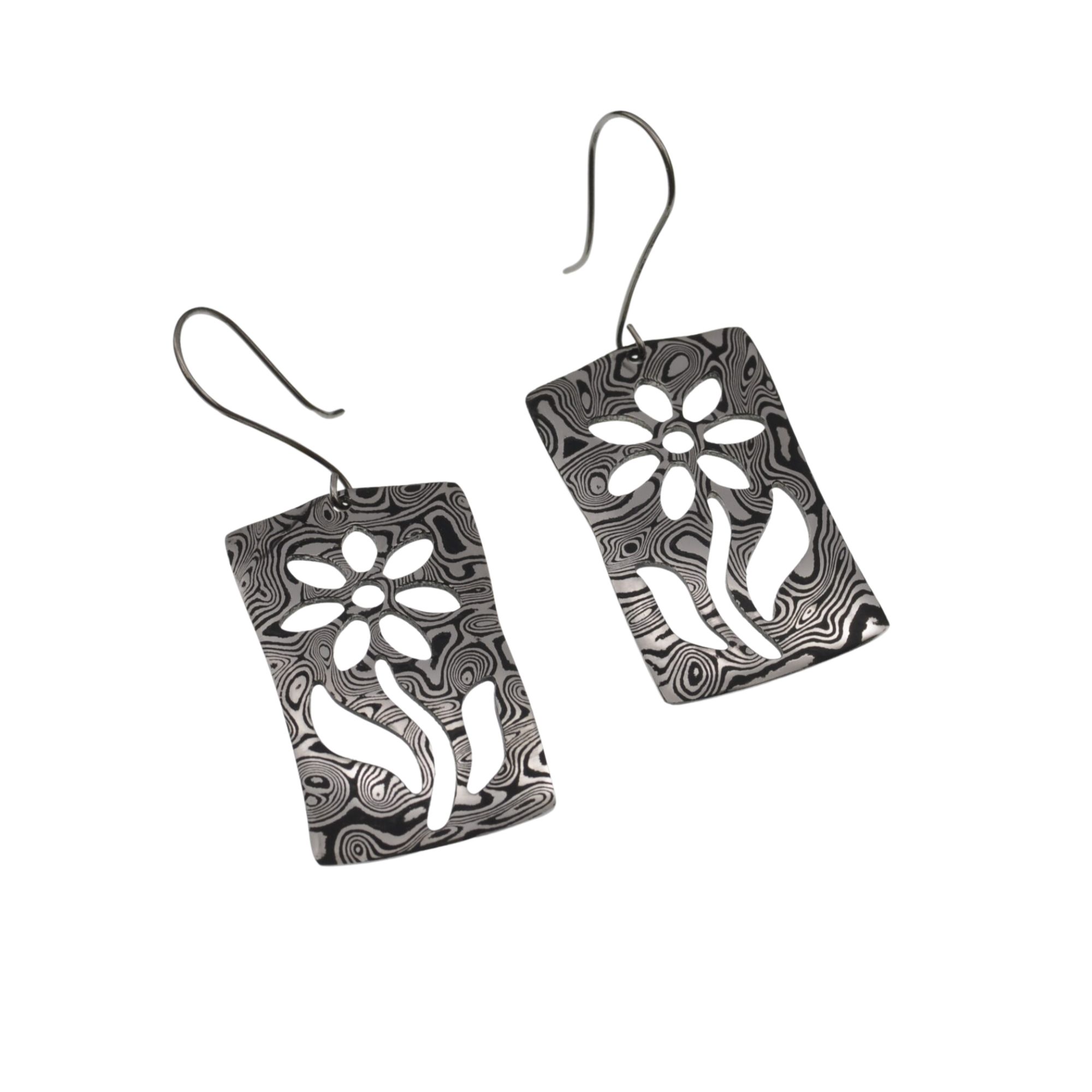 Orecchini in damasco di acciaio inossidabile Piastre fiore