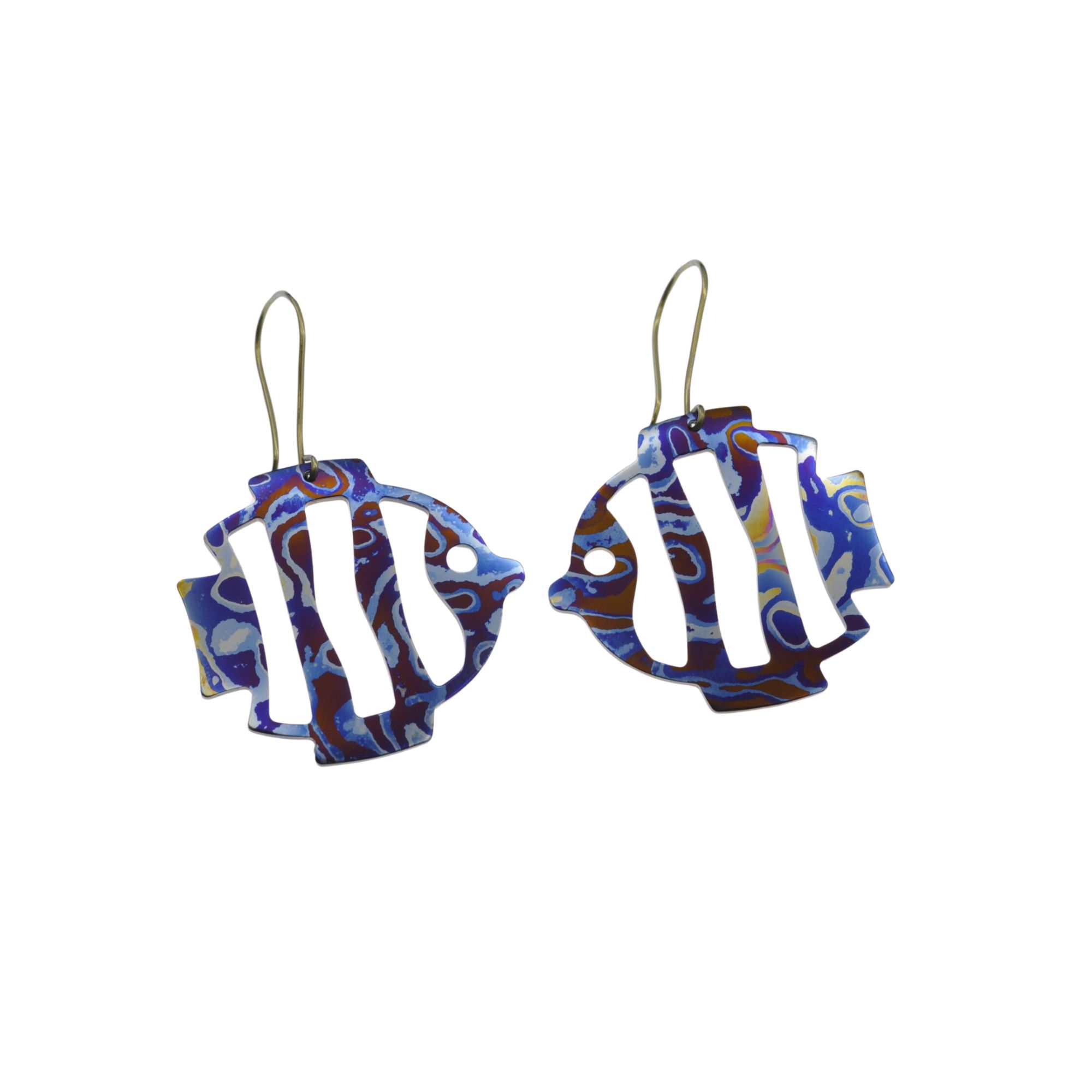 Orecchini in damasco di titanio pesci earrings titanium damask