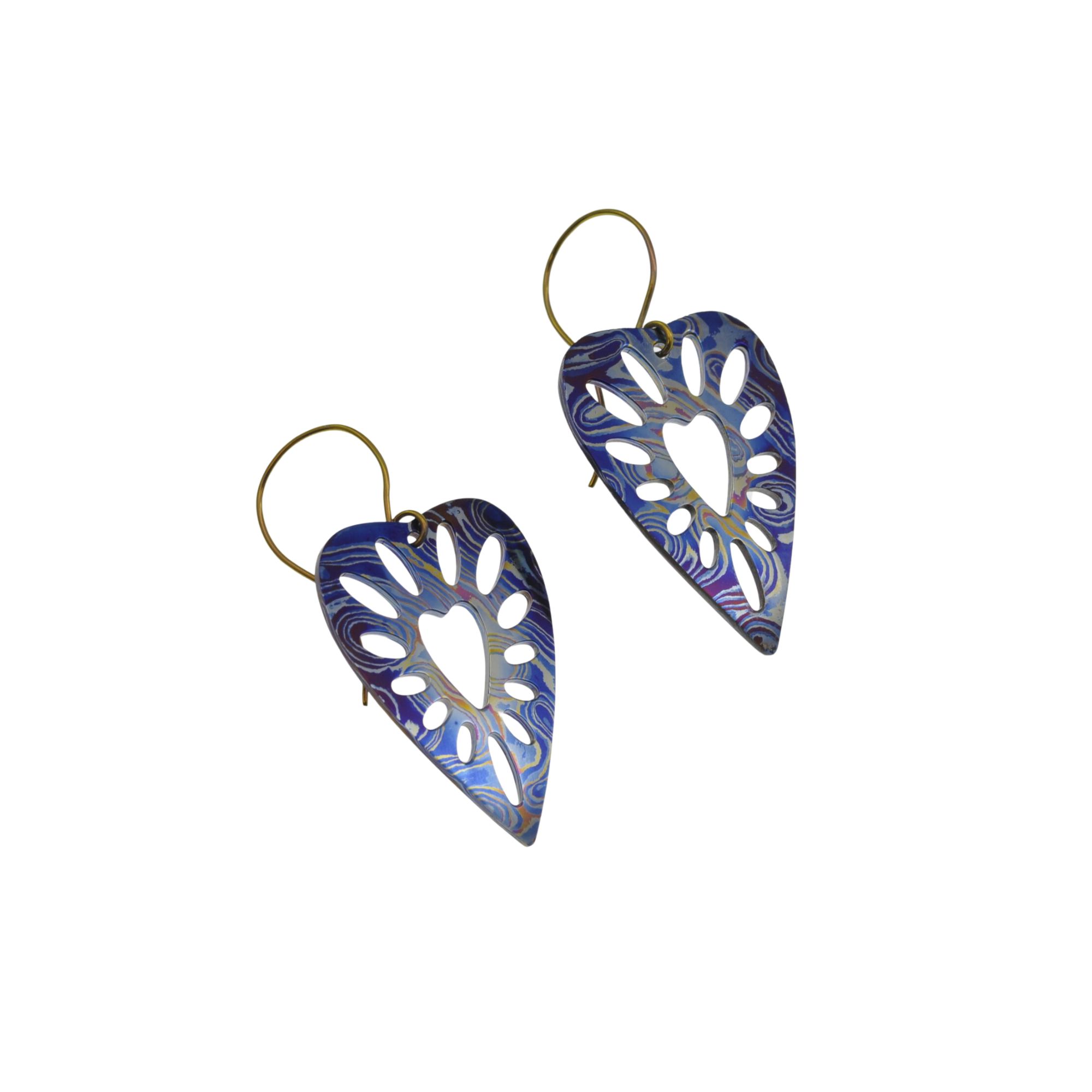 Orecchini in damasco di titanio cuori con cornice traforata earrings titanium damask