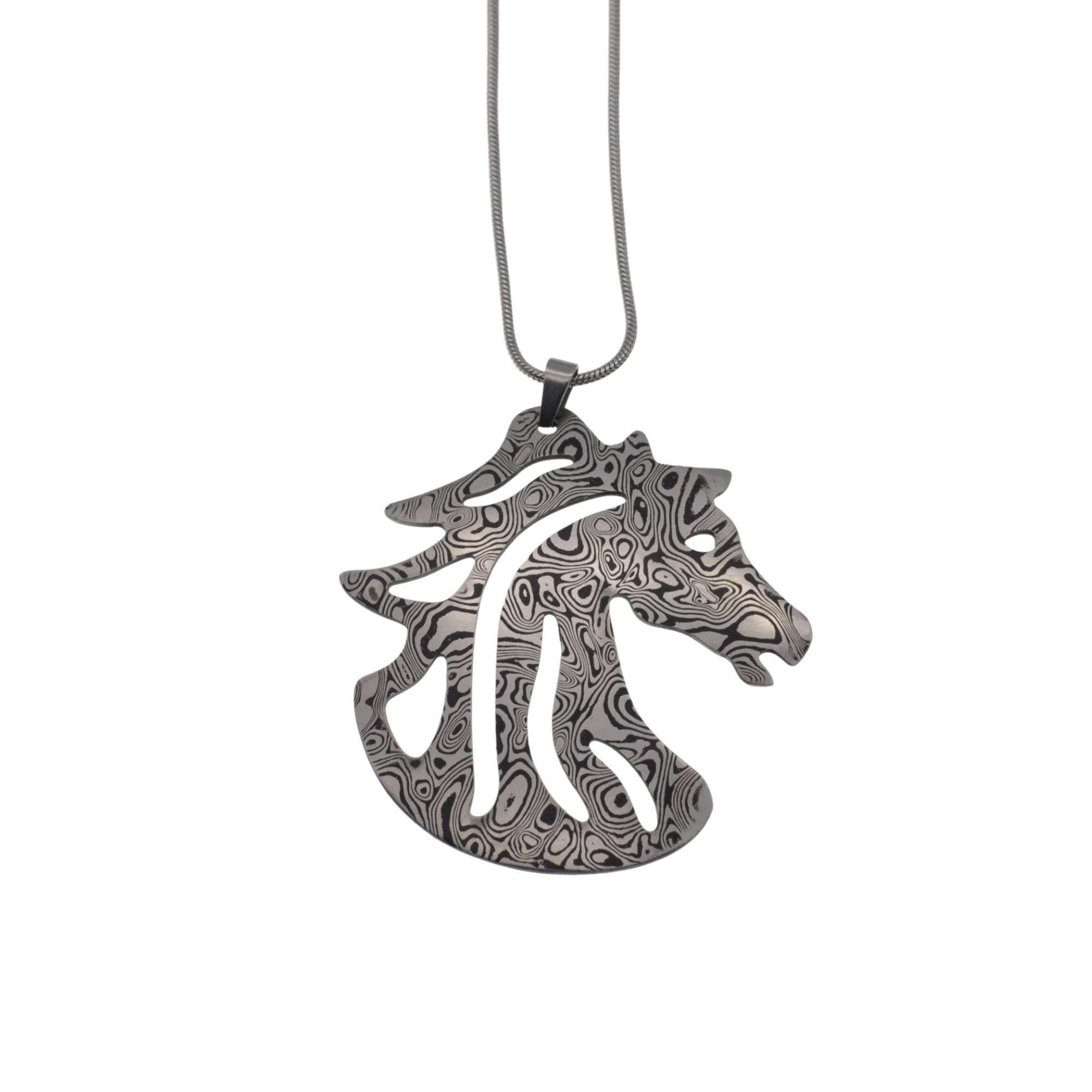 Pendente in damasco di acciaio inossidabile Testa di cavallo grande