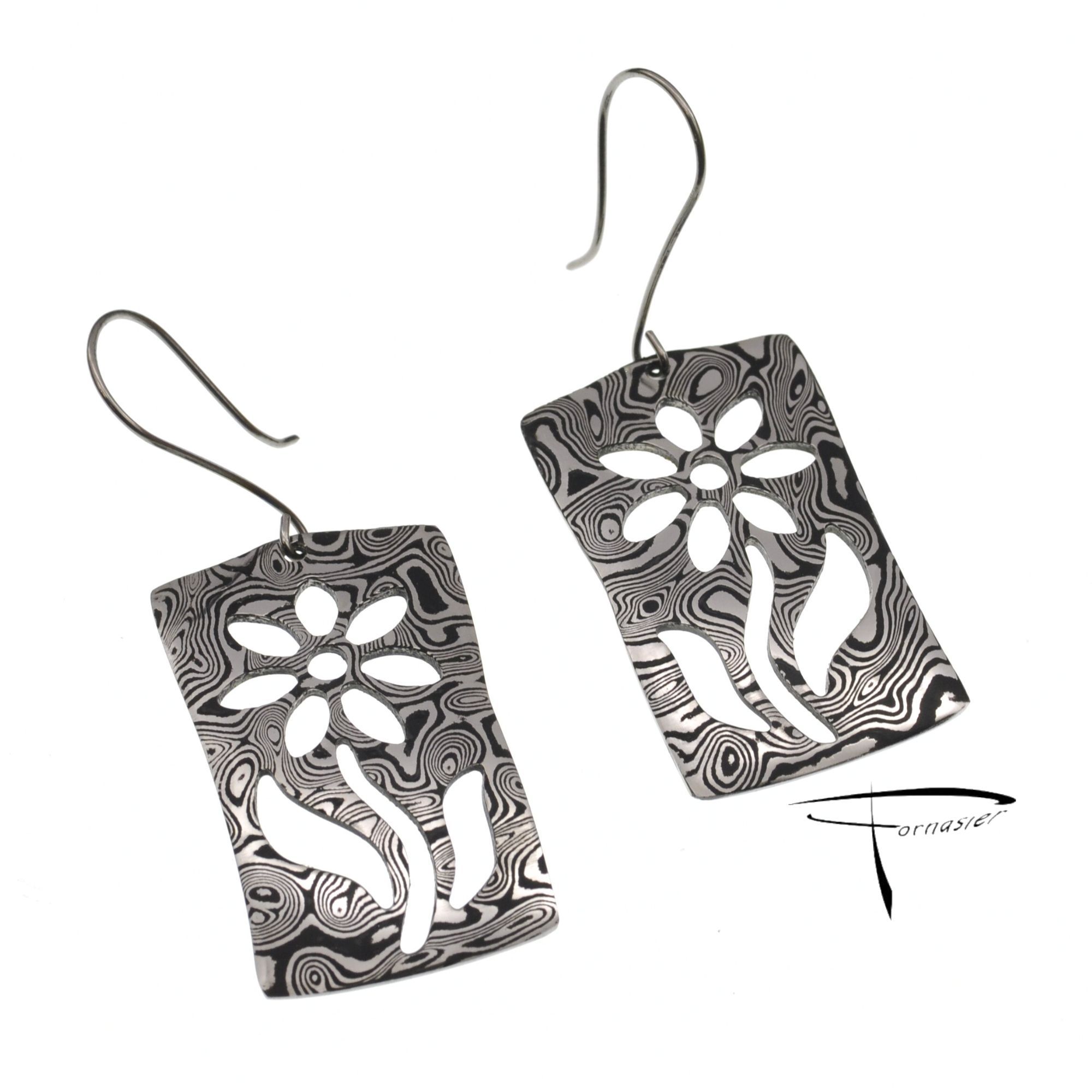 Orecchini in damasco di acciaio inossidabile Piastre fiore