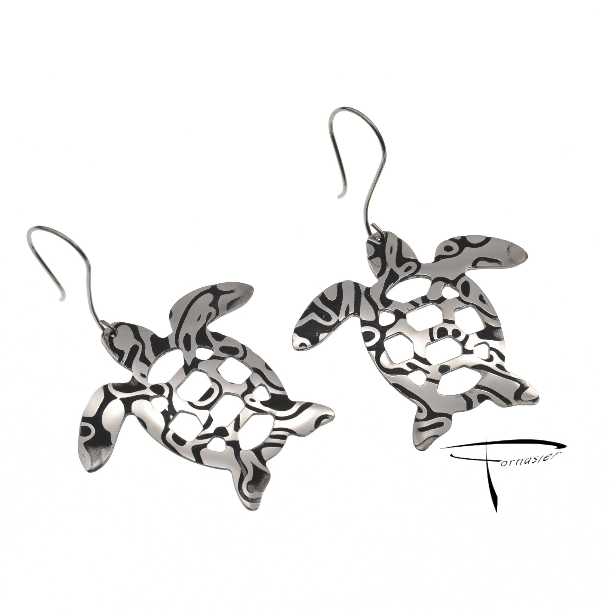 Orecchini in damasco di acciaio inossidabile Tartarughe