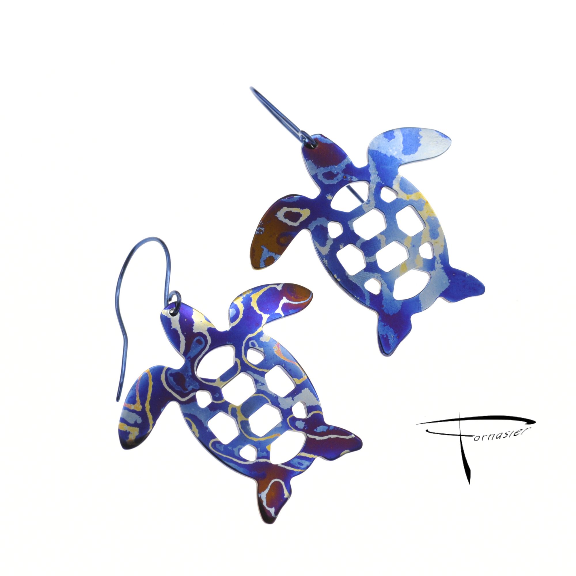 Orecchini in damasco di titanio Tartarughe