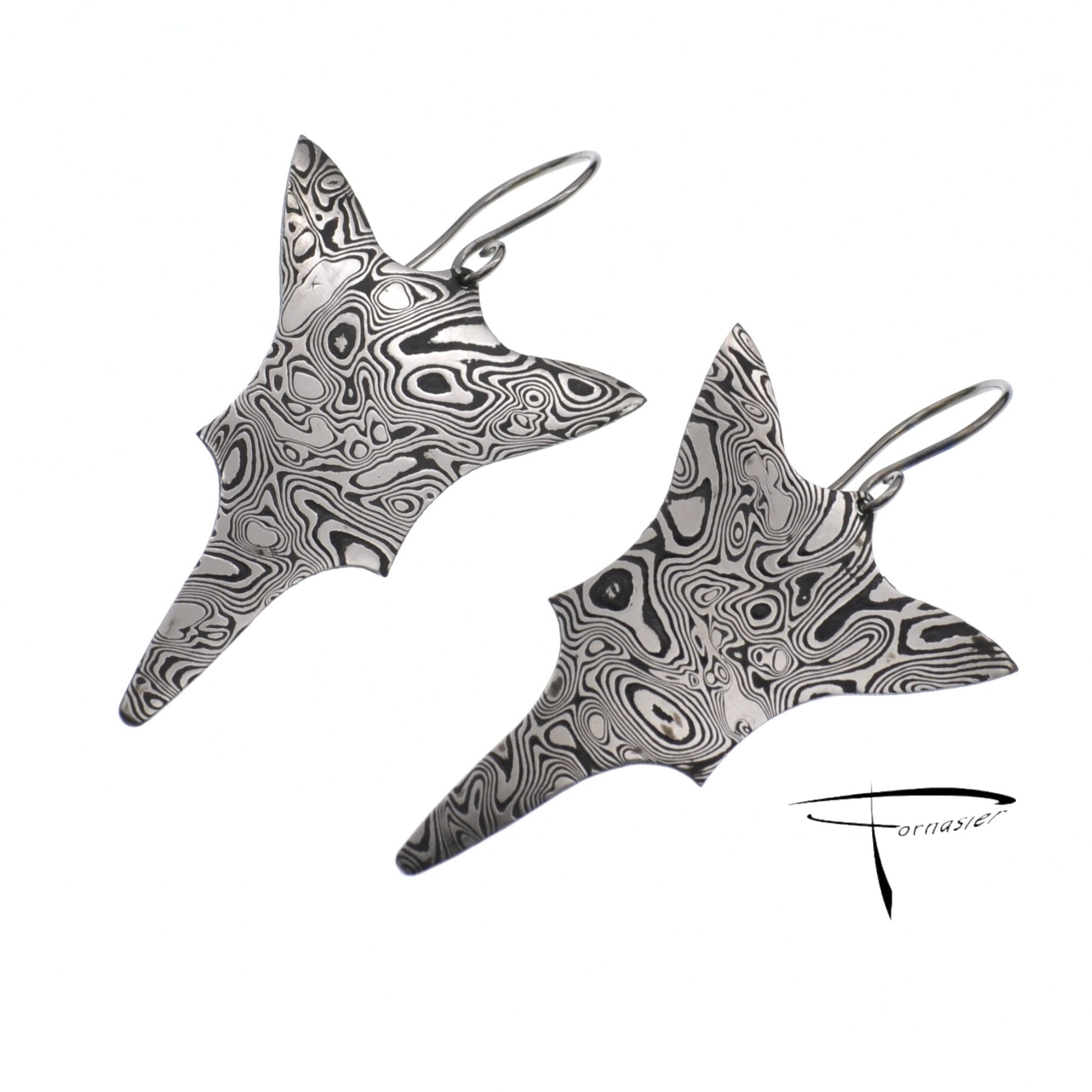 Gli orecchini “Triangoli Astratti Capovolti” in acciaio Damasco sono leggeri, anallergici e resistenti alla corrosione. Le linee pulite e angoli invertiti creano dinamismo ed equilibrio.