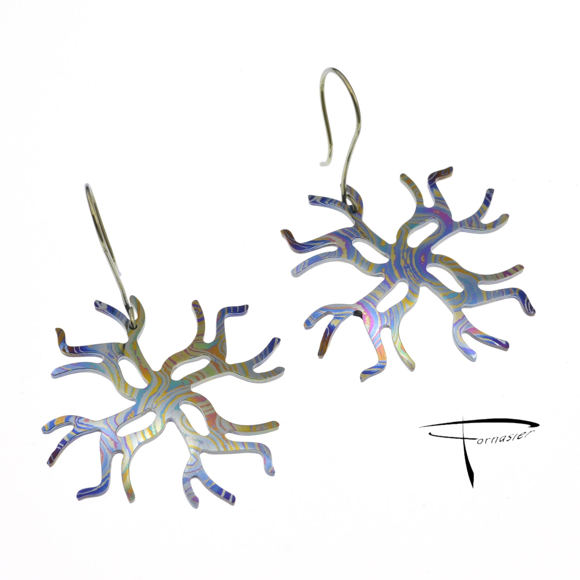 Orecchini in damasco di titanio Coralli 4 rami