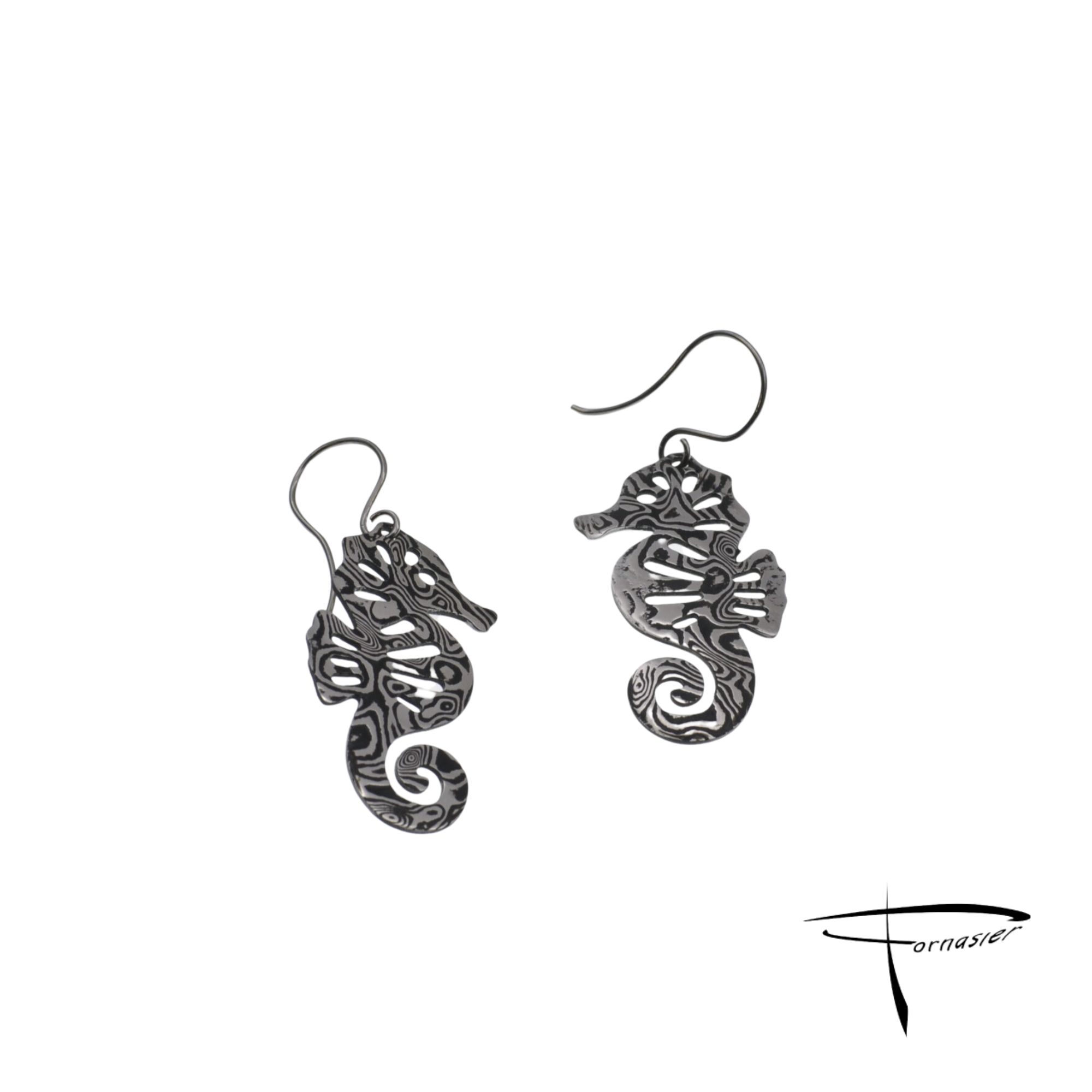 Orecchini in acciaio damasco inossidabile cavallucci marini