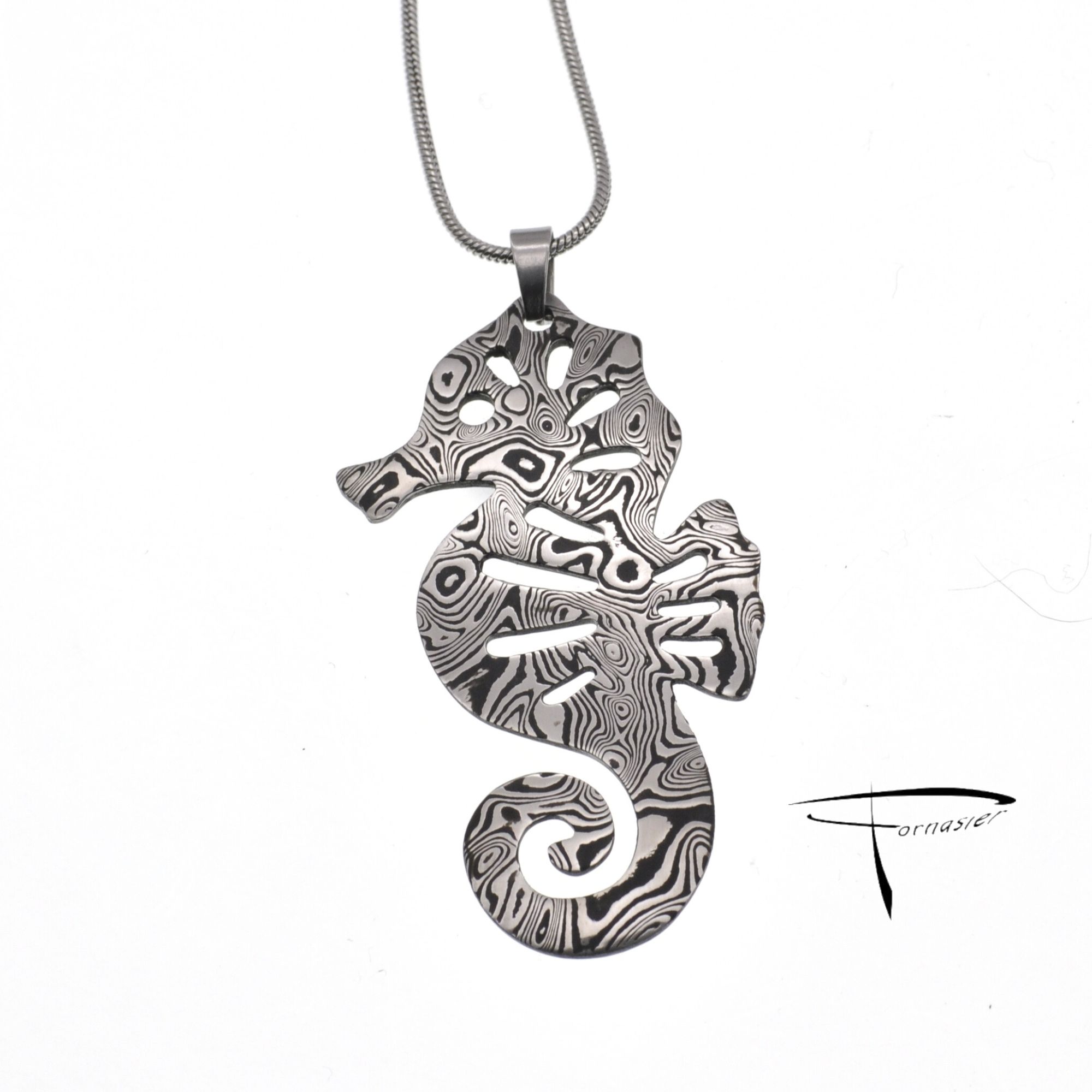 Pendente in damasco di acciaio inossidabile Cavalluccio marino