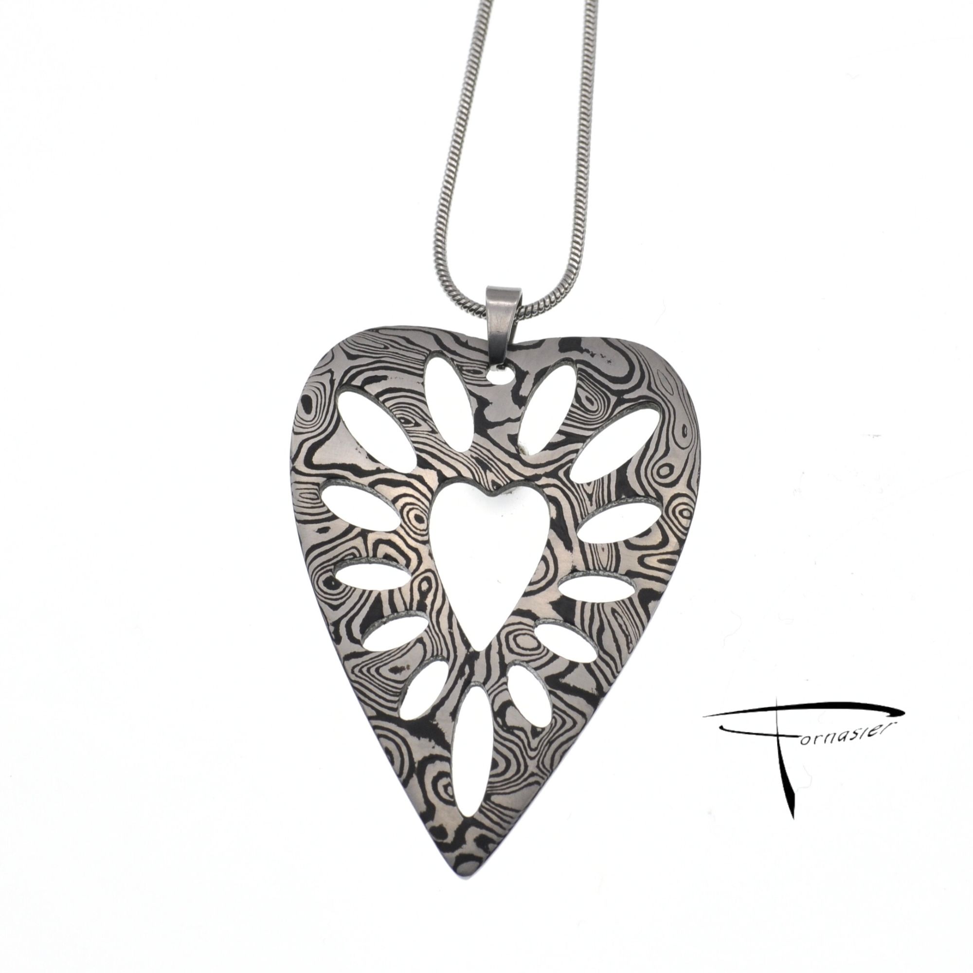 Pendente in damasco di acciaio inossidabile Cuore con cornice traforata