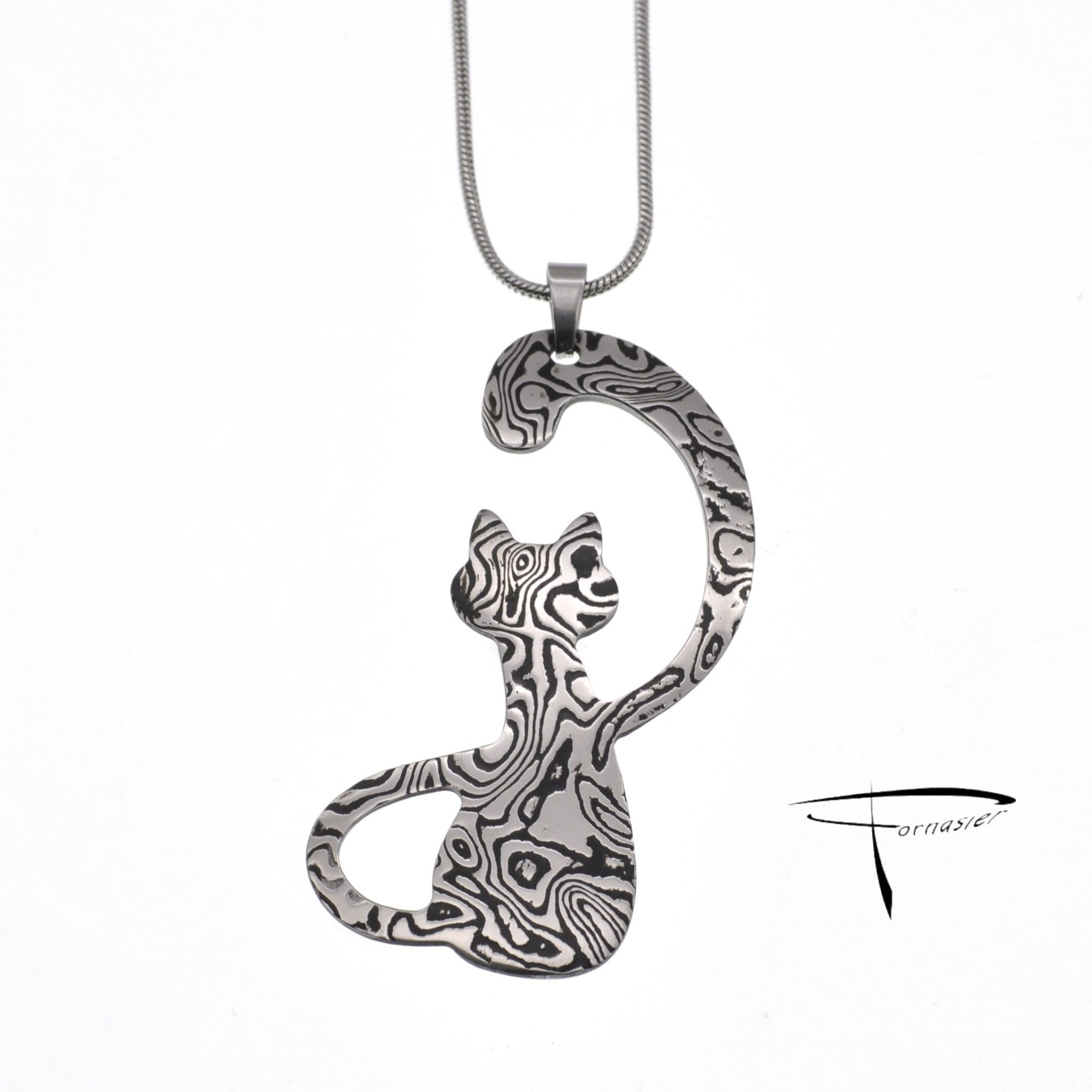 Pendente in damasco di acciaio inossidabile Gatto