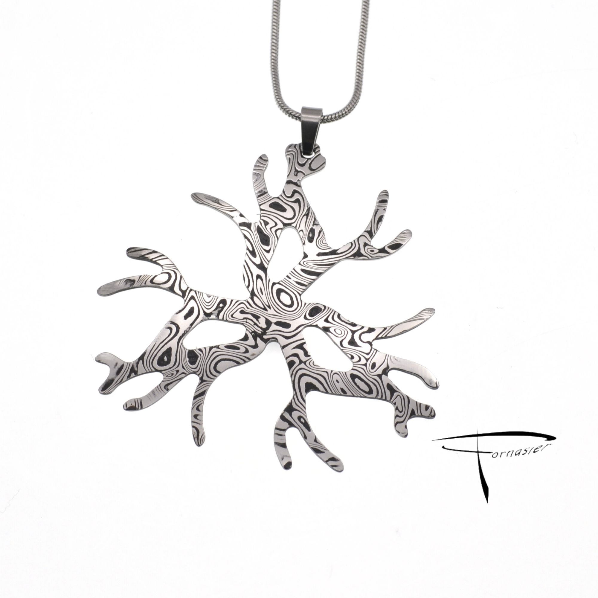 Pendente in damasco di acciaio inossidabile Corallo tre rami