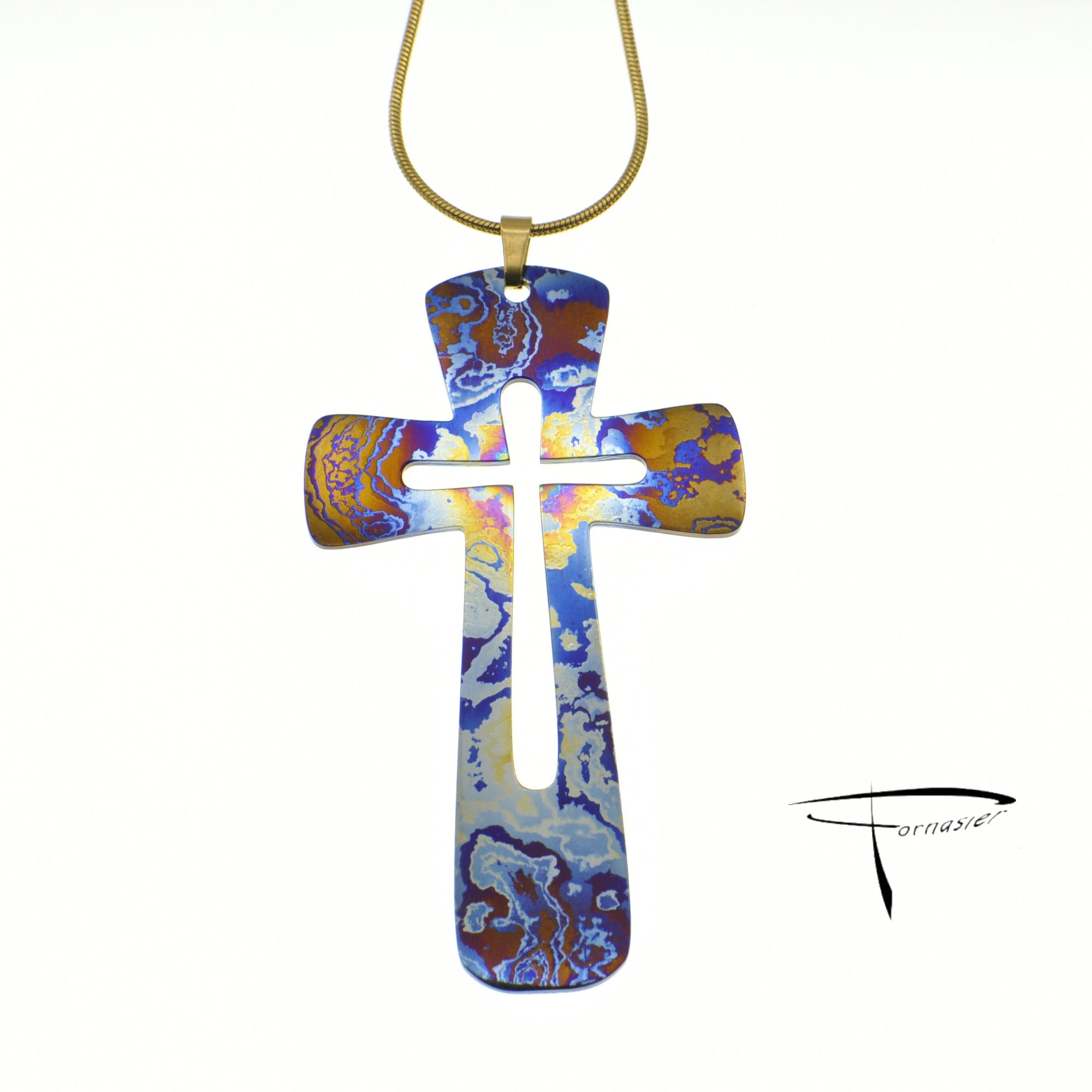 Pendente in damasco di titanio Croce grande con foro