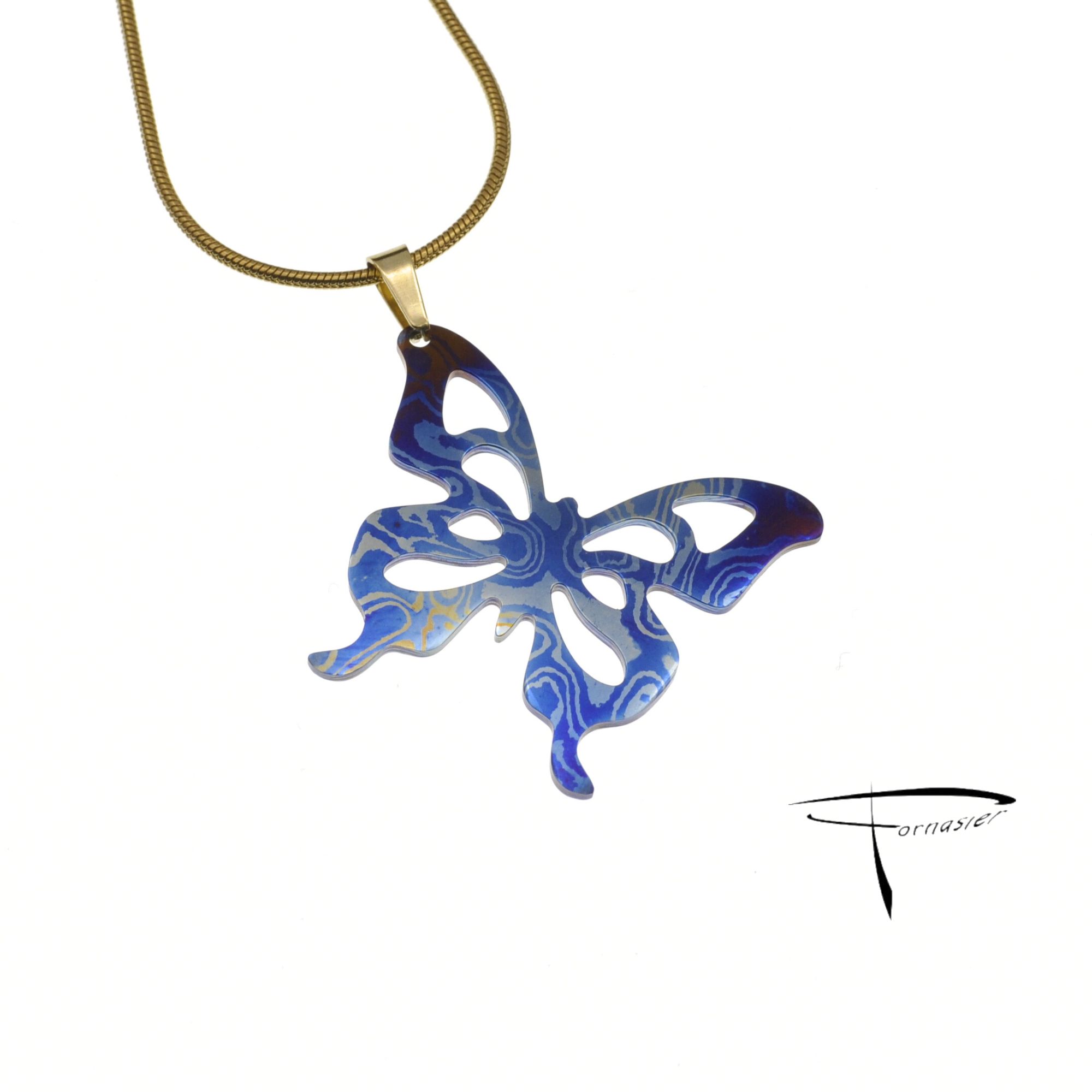 Pendente in damasco di titanio farfalla piccola pendenti damasco di titanio