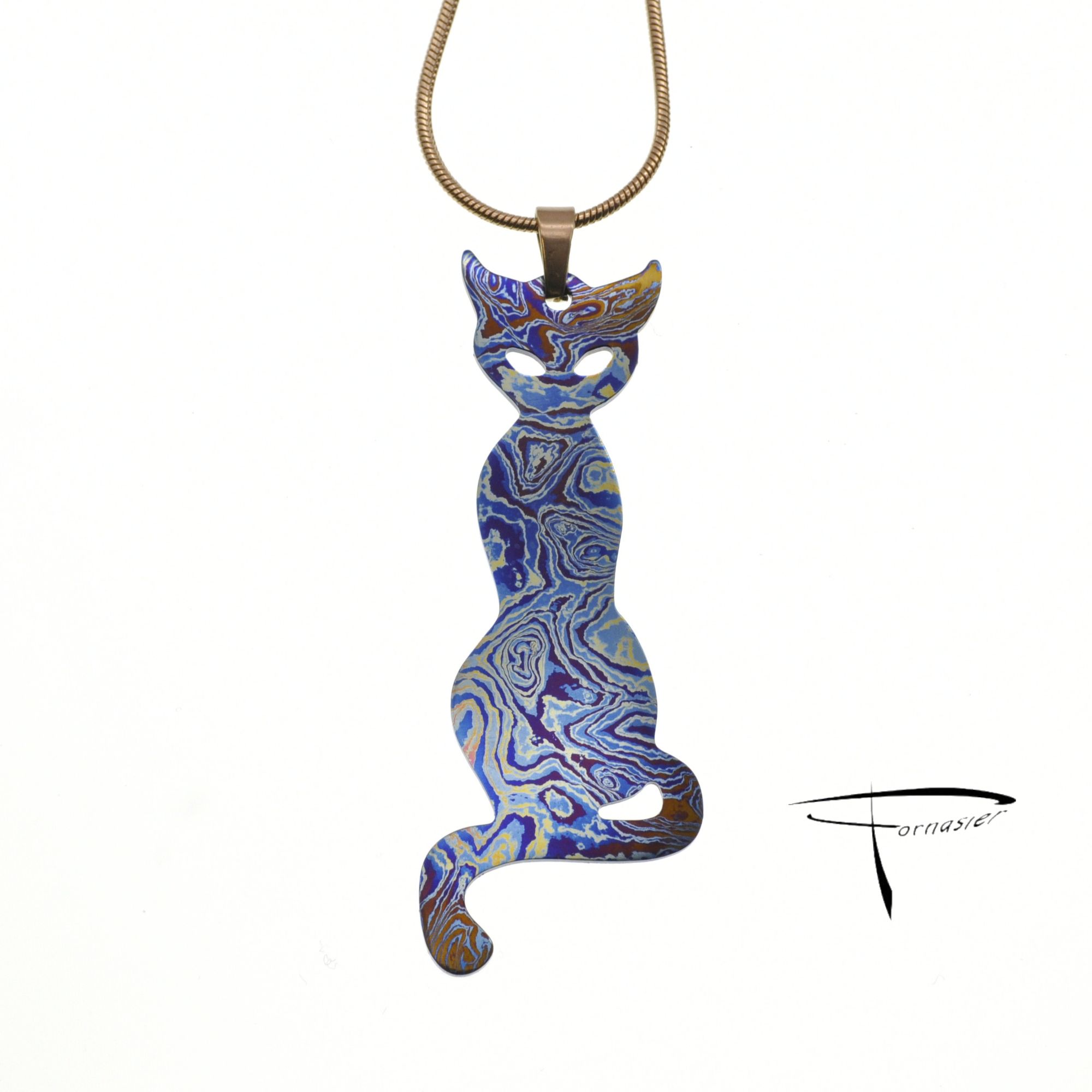 Pendente in damasco di titanio gatto orientale pendenti damasco di titanio