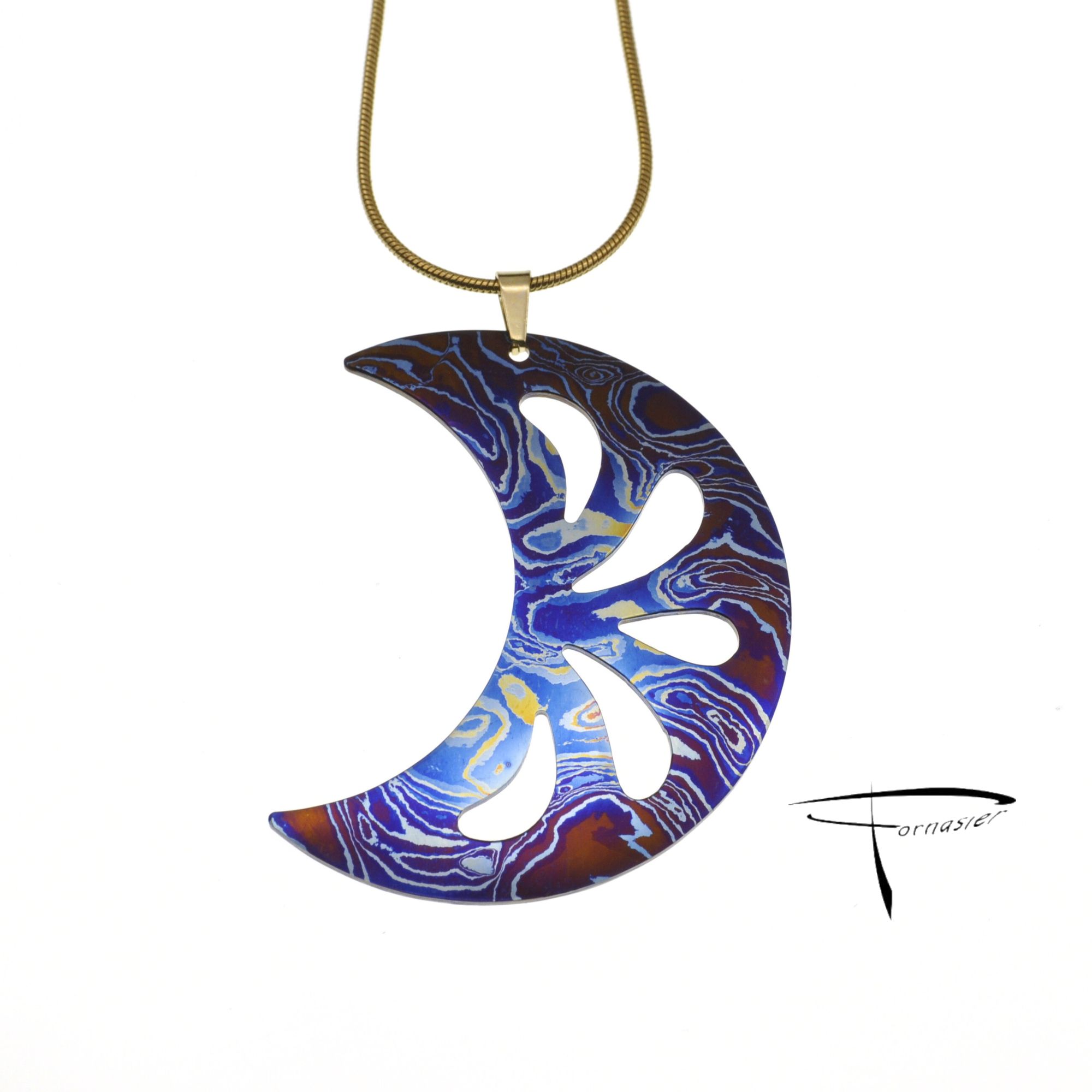 Pendente in damasco di titanio luna traforata pendenti damasco di titanio