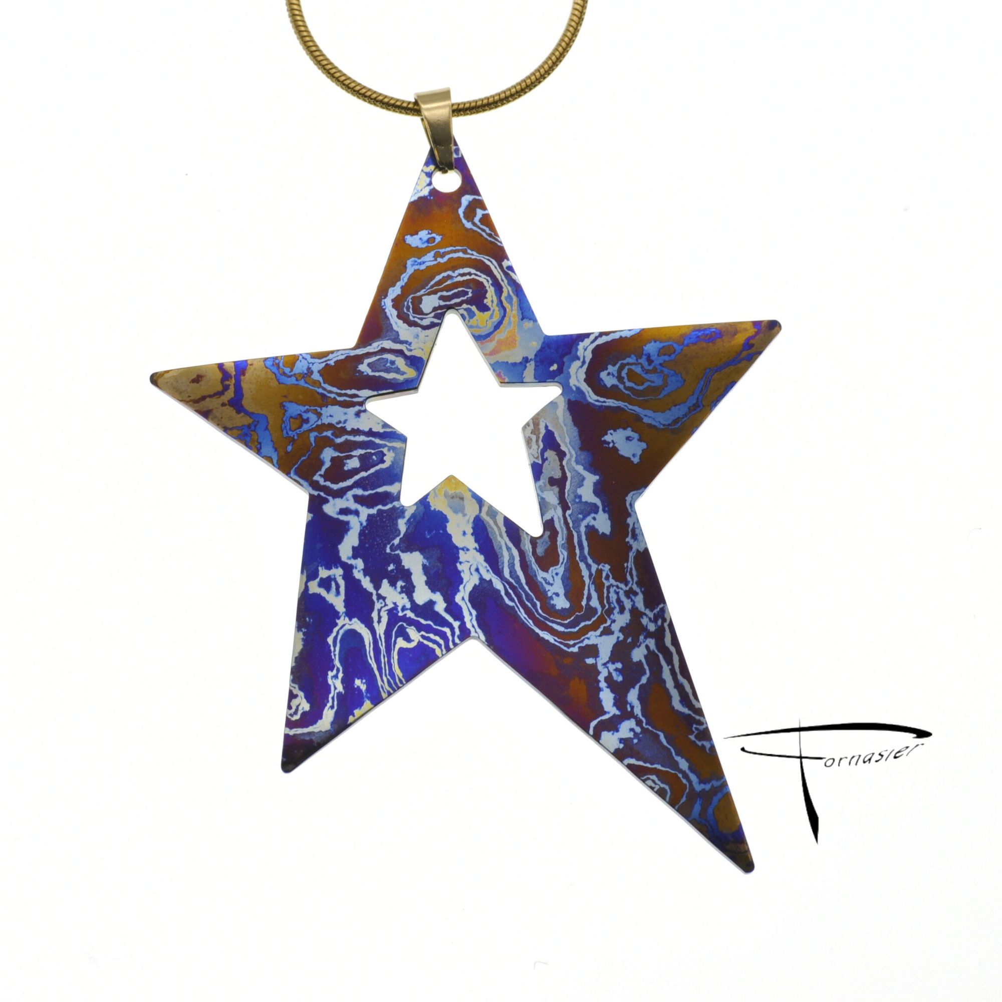 Pendente in damasco di titanio Stella irregolare