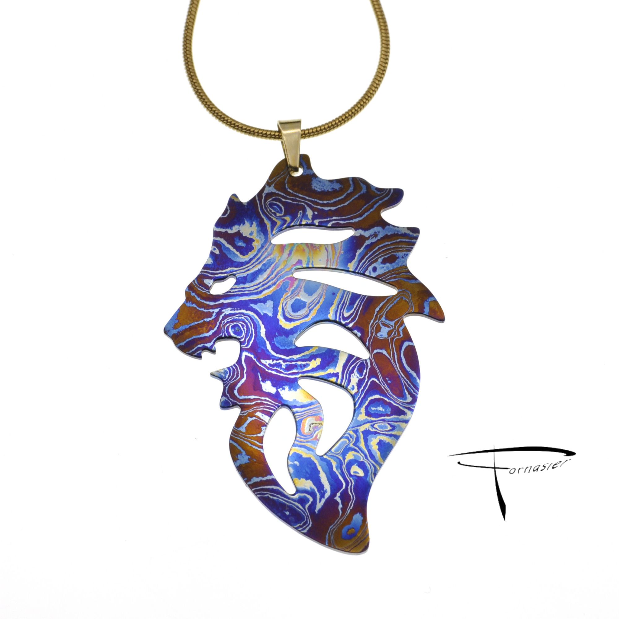 Pendente in damasco di titanio testa di leone pendenti damasco di titanio