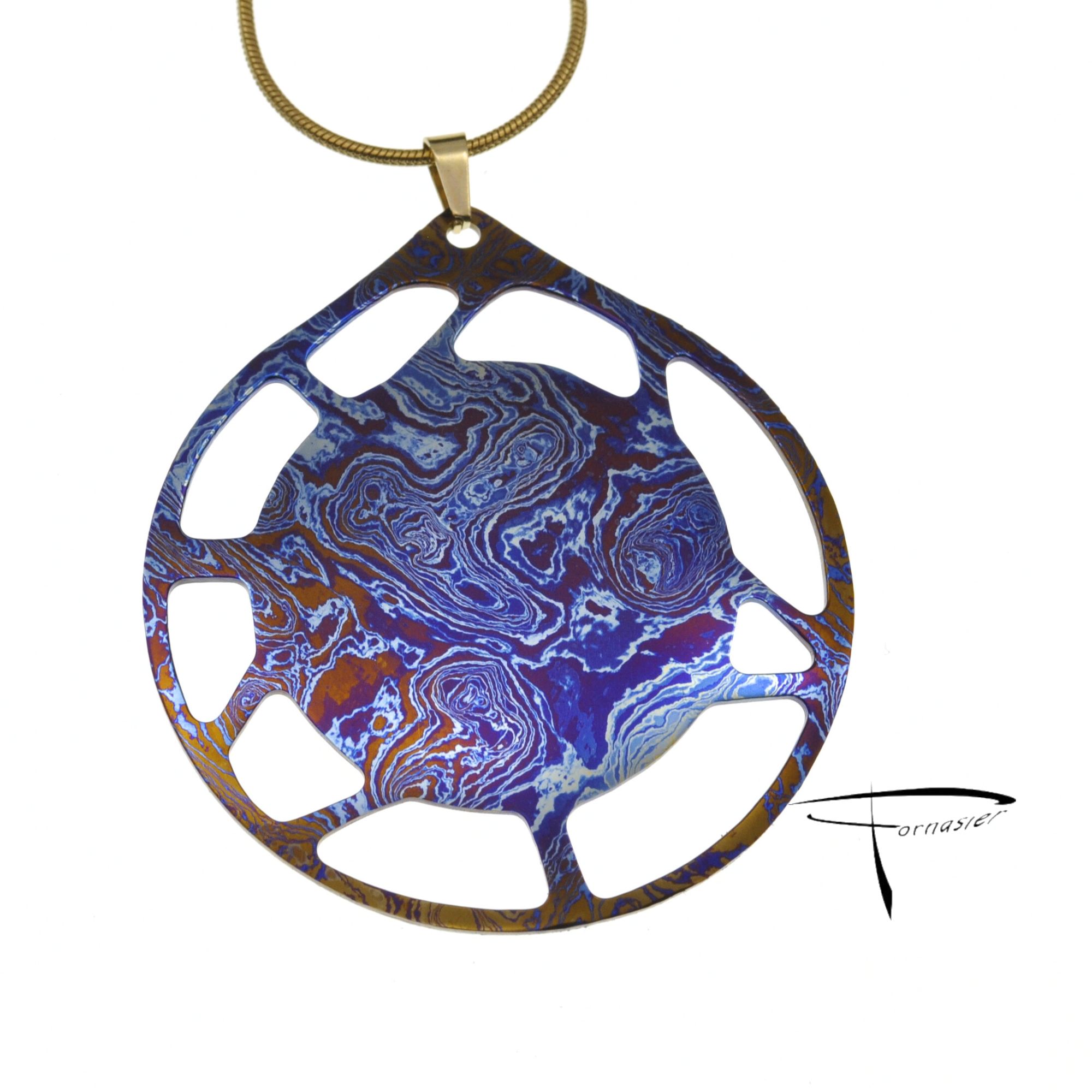 Pendente in damasco di titanio tondo con cornice traforata pendenti damasco di titanio